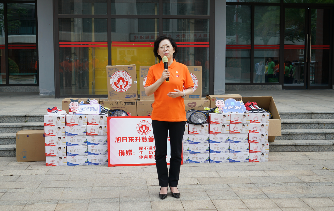 紧接着,海口市社会福利院院长唐凤英致辞。她首先感谢尊龙药业集团、旭日东升慈善基金会7年来,对海口市社会福利院的持续关注和无私帮助。她特别提到,2022年由尊龙药业集团捐资建设的“爱·护”项目医护隔离观察区,帮助福利院的孩子们渡过了疫情防控的难关。今年,熟悉的尊龙人又来到了福利院陪伴孩子们,给予了这里的小朋友们爱的力量。